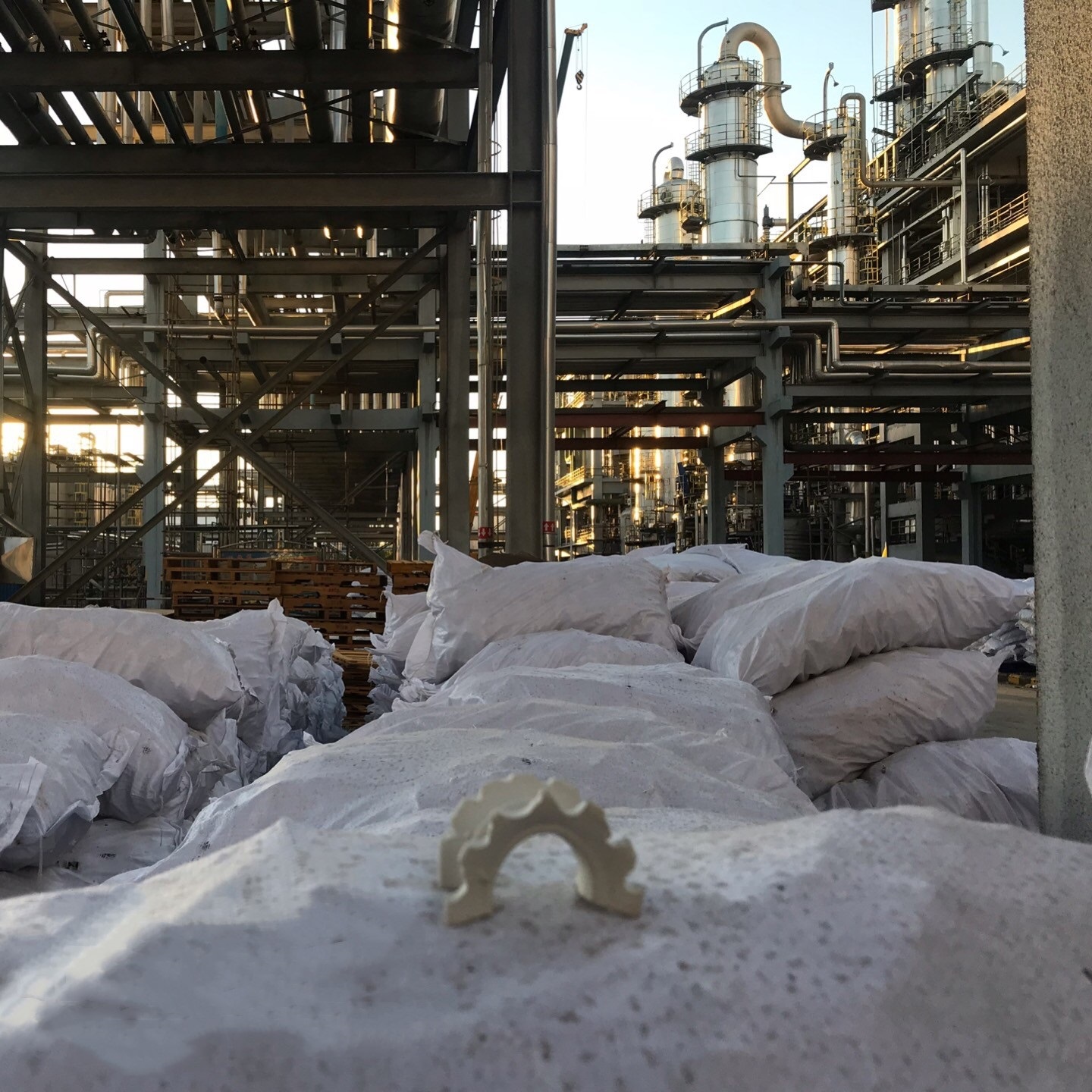 国内老客户这次又采购了一批陶瓷异鞍环填料,这次我们去到了现场跟随客户一起在施工现场。